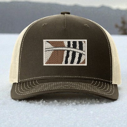 The Limit hat focuses on pattern, not illustration. A rectangular patch inspired by upland feather barring gives this design a rugged, understated look that feels equally at home in the field or off the clock. It’s quiet, confident, and intentionally simple.