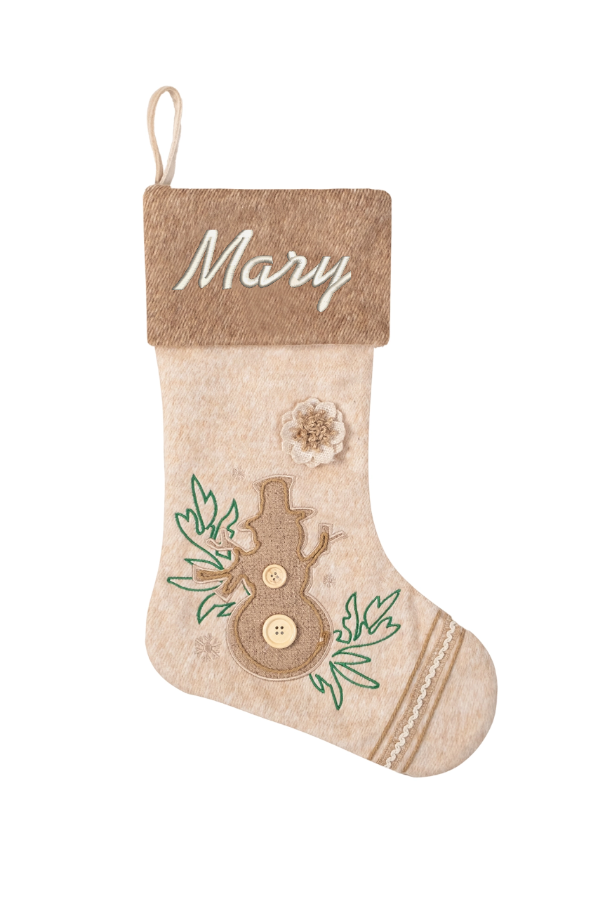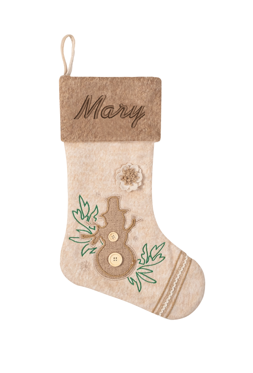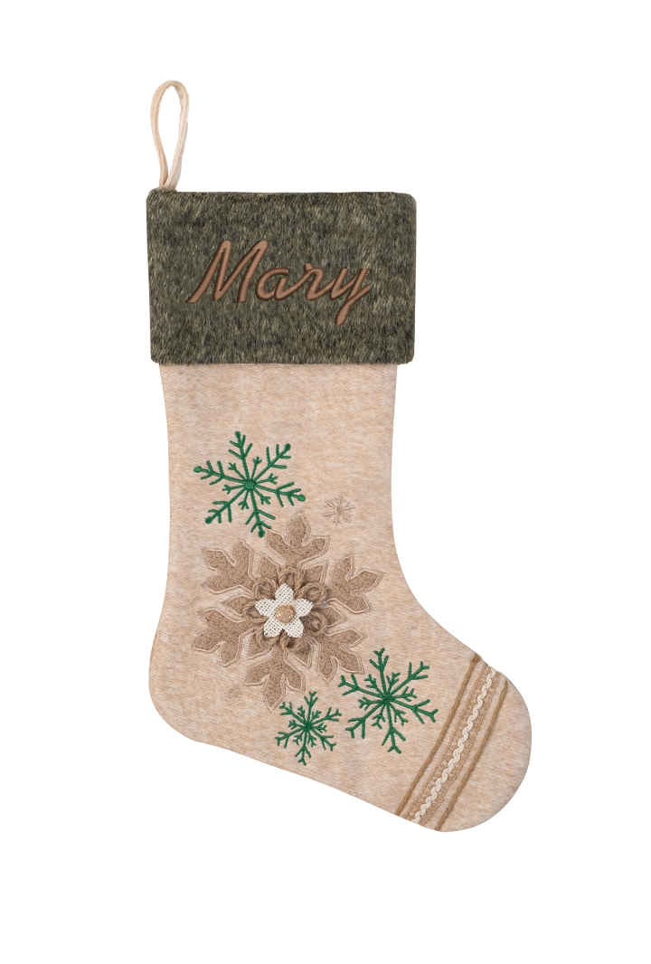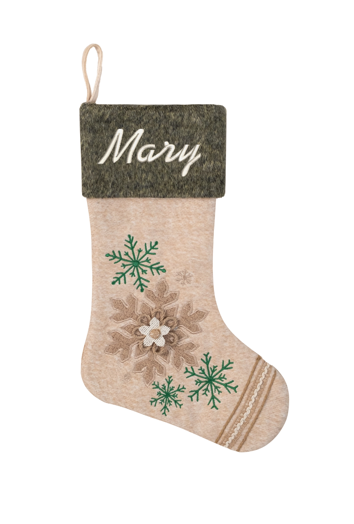 Cozy, rustic Christmas stockings personalized just for your family. Each stocking features soft felt fabric, woodland embroidery, and your custom name stitched on the cuff in off-white or brown thread. Perfect for fireplaces, gifting, and creating holiday traditions.
